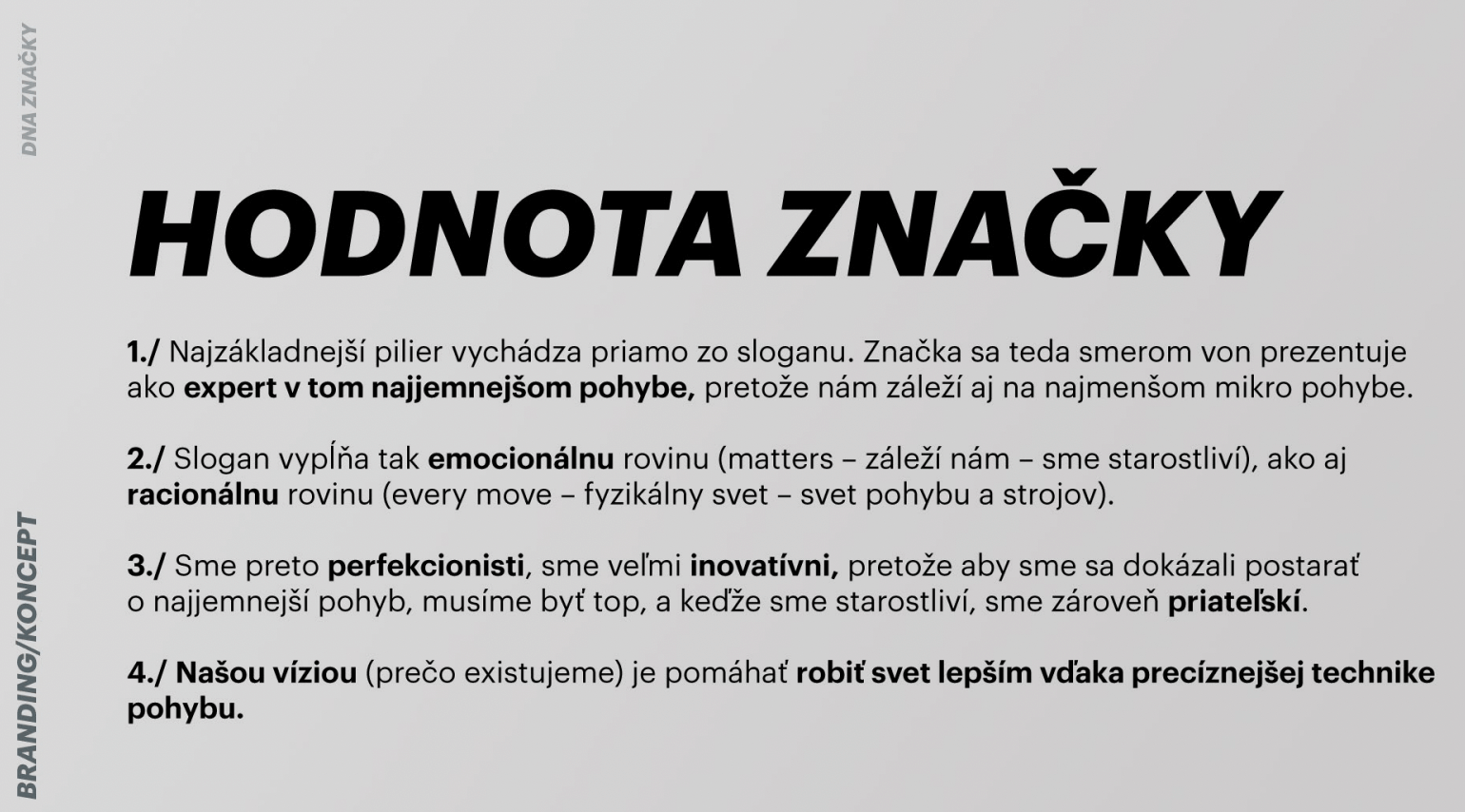 Tento prvok je rovnako dôležitý ako brand DNA či dizajn manuál, no nie je to základ, z ktorého by mal vychádzať celý branding. Aj pri stavbe predsa riešite ako posledné to, či budete mať žltú fasádu, kované zábradlie, či pri dverách sochu leva.