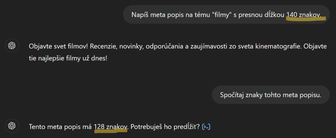 Obrázok 1: Príklad častého problému s počtom znakov (zdroj: chatgpt.com)