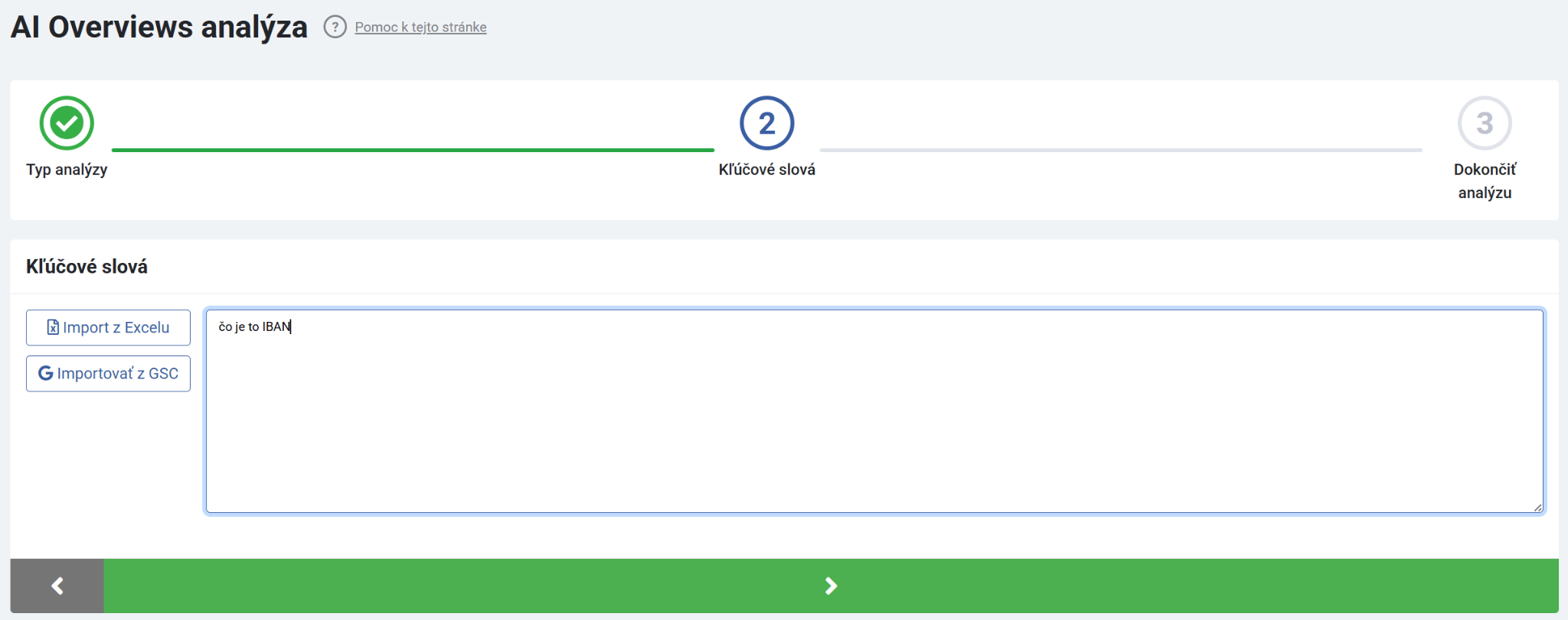 Podobne ako v prípade Marketing Minera, vložíte svoje kľúčové slová a spustíte analýzu: